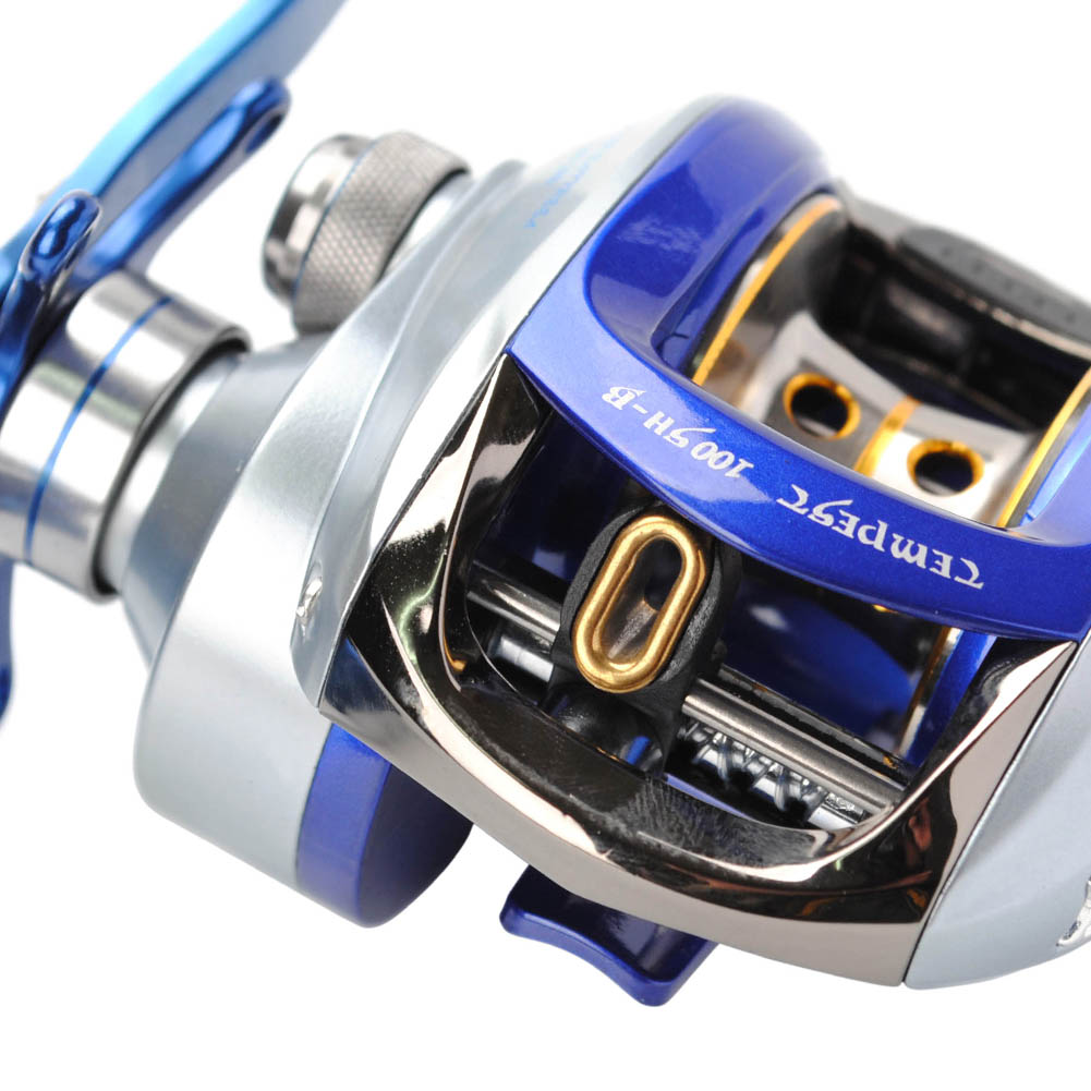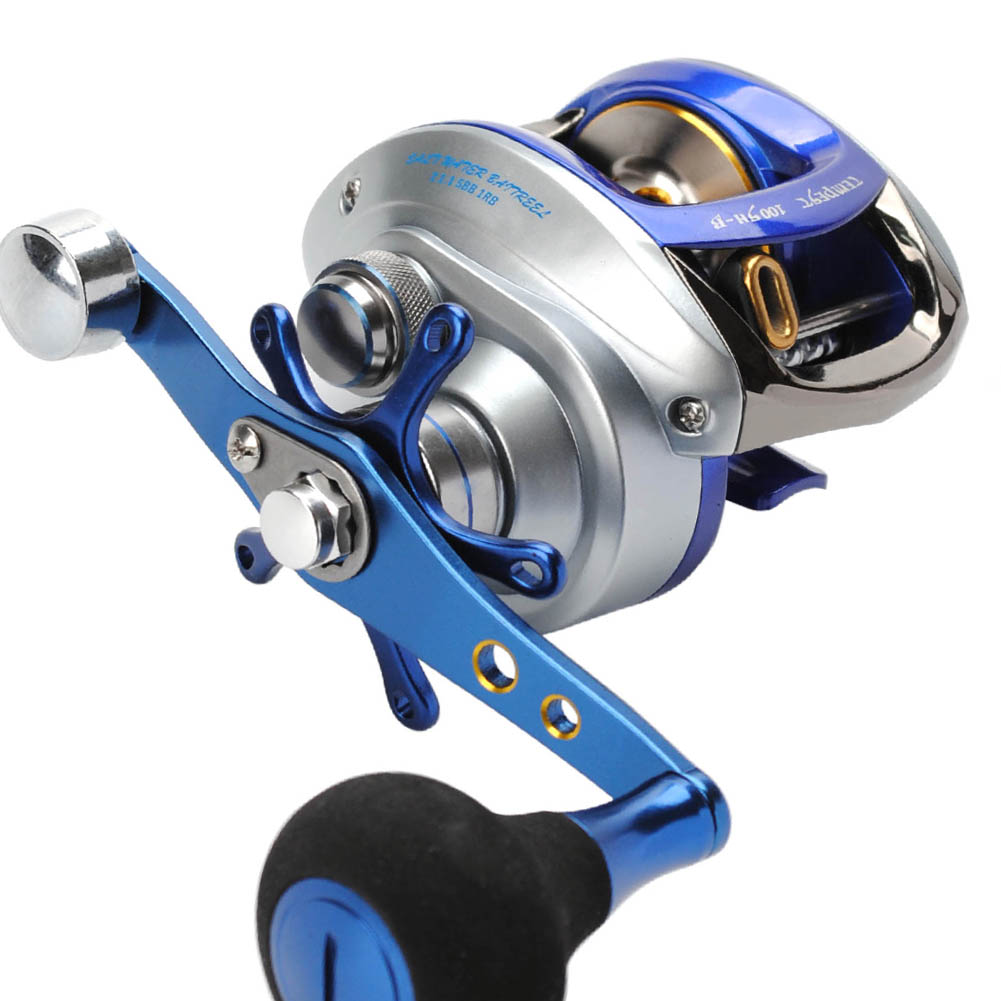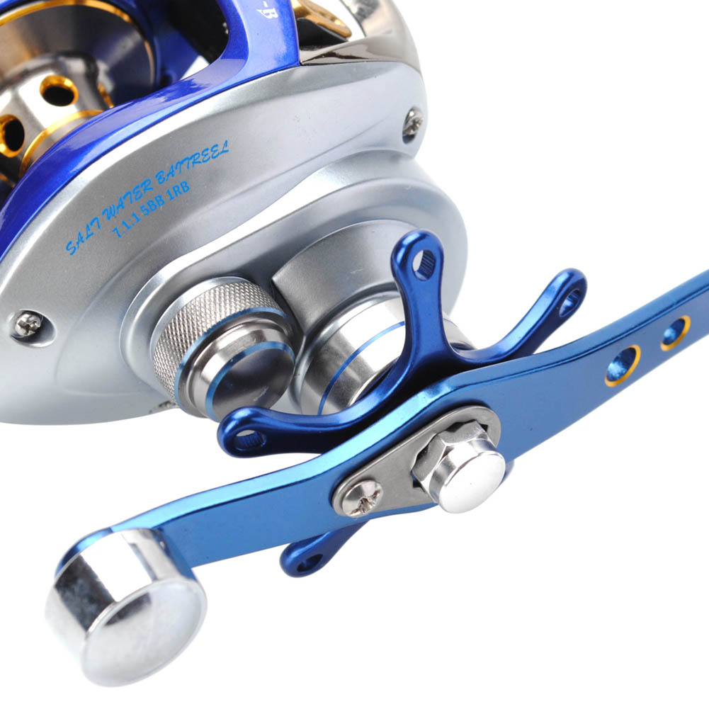 Baitcasting Reel Left Hand Saltwater High Speed 7.1:1 13Lb Power 12LB/110Yd Surf Fihsing Single Knob Power Handle Centrifugal Brake Blue Silver