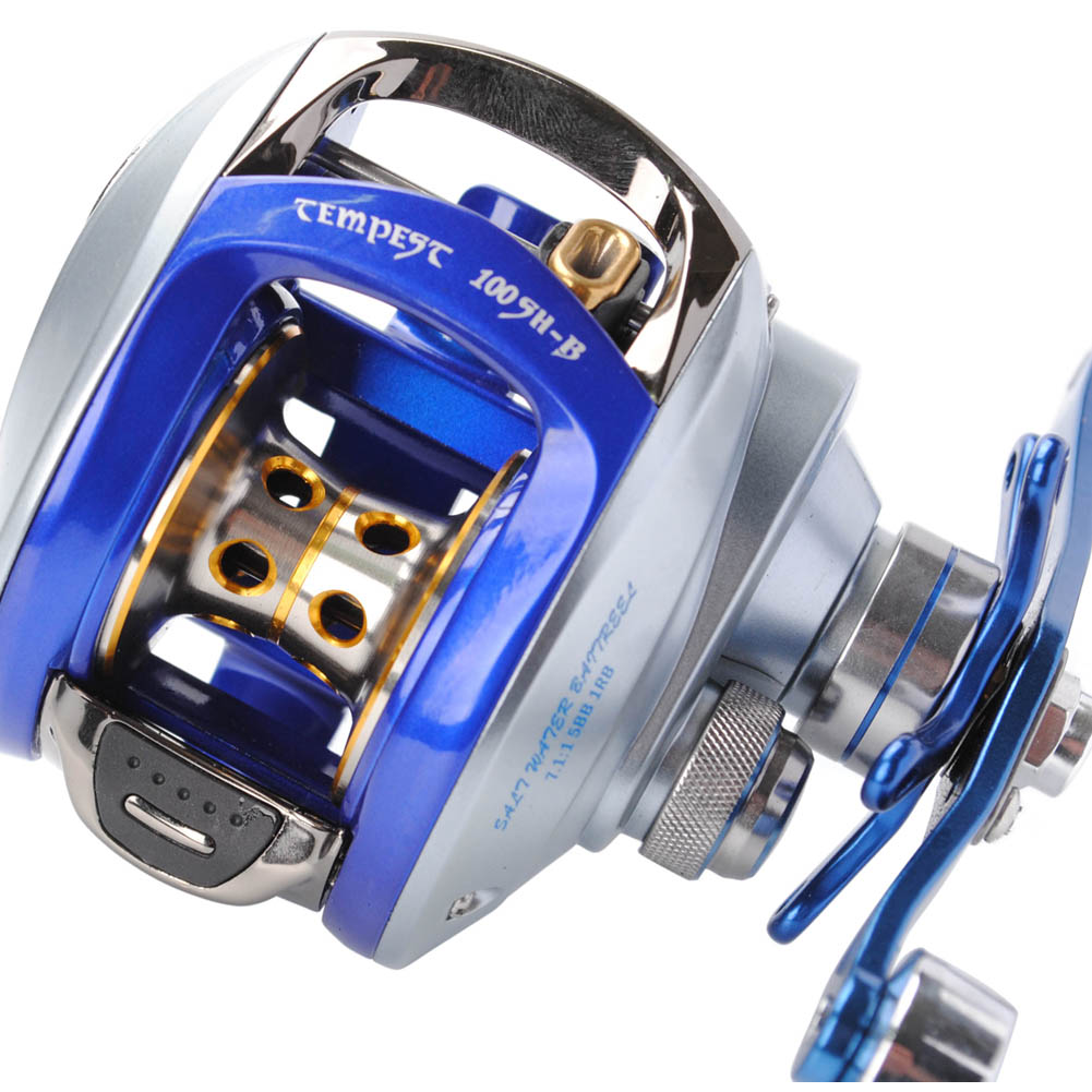 Customized design for saltwater use, strong graphite side plate for corrosion protection. The TEMPEST SALTWATER BAITCASTER deserve your trust after all kinds of tough environments. Internal adjustable centrifugal braking system was loaded with 6 disks to fit any condition. Silky smooth ceramic line guide, double anodized spool goes like wind; deliver excellent cast ability you always expect.