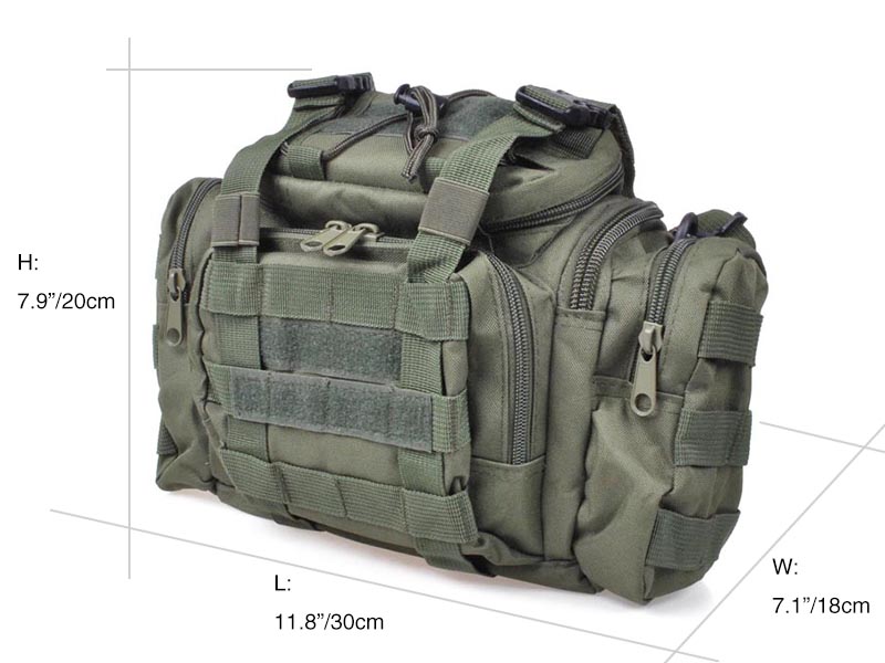 Multi-purpose fishing tackle bag, made of water-resistant 900D oxford fabric, can be used as waist pack, haversack or carry bag. Tough stitched and zipper lock, this bag storage your pliers, fishing box, baits and lures, small reel and other accessories all secure and organized . Numerous pockets and compartments for maximum storage make it a wonderful companion for anglers.