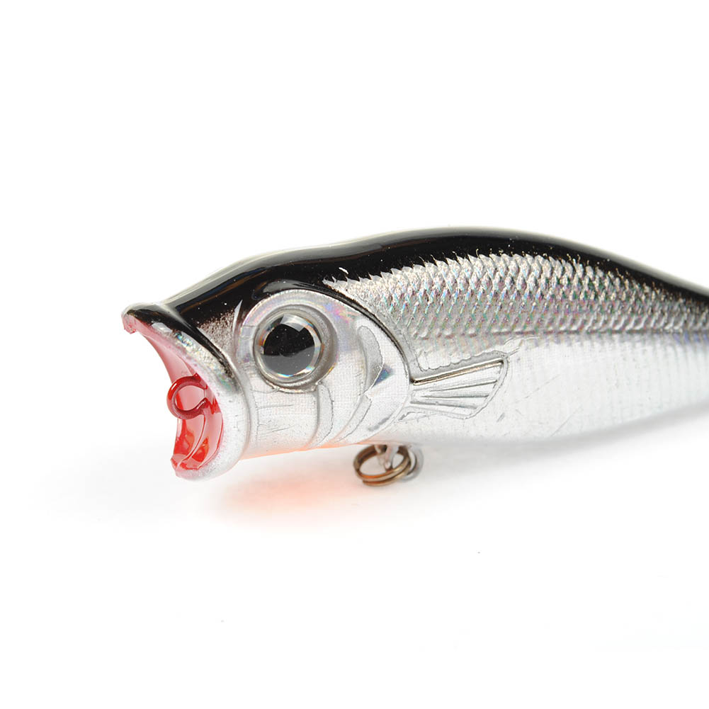 The Pop is a rattling topwater bait. The lure can create an outstanding popping action on the water. When put it in the water, the popper will sit its head up and part of its mouth ready to spit and its attraction to the fish will submerge for rattling seductive sound. Featuring “Living Eyes” and a reflective, holographic finish, the Popper has the look and the action to attract the BIG bites, and the twin sharp treble hooks seal the deal.