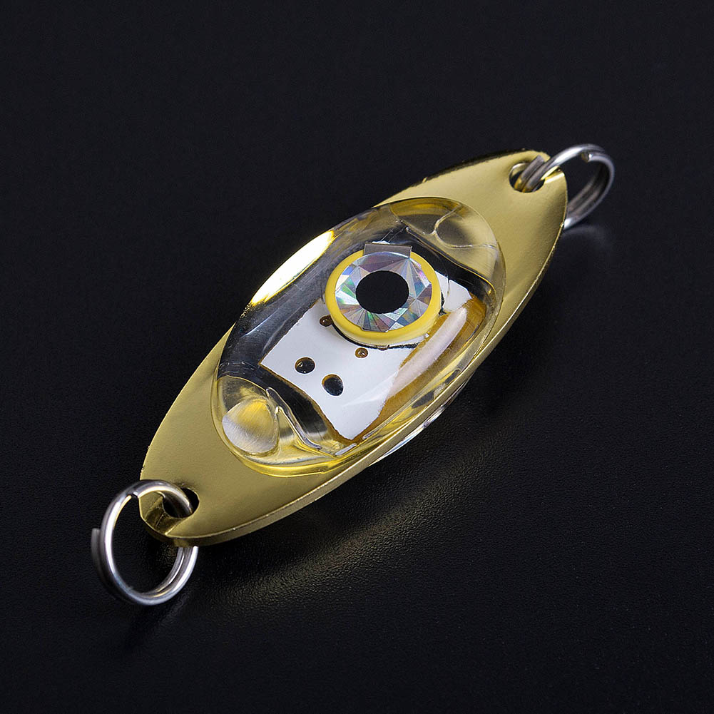 –Automatically turn on in the water (also flash by pressing the eye with your hands)