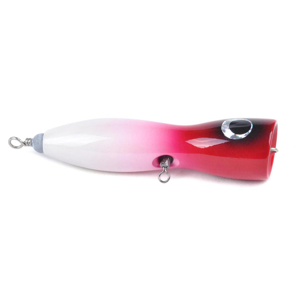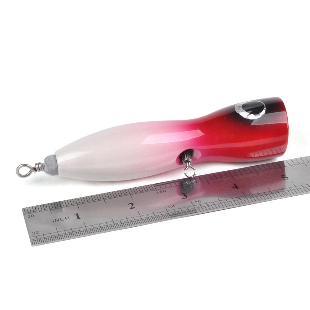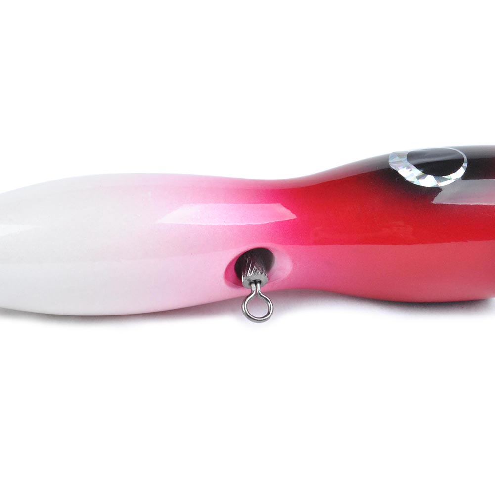 Constructed from solid hardwoods selected for the best density and buoyancy. A unique through-body stainless steel wire and swivel system for consistent strength when fighting. Along with the crazy splash and pop action, this highly detail painted lure triggers trophy strike one after one. The special rear weighted dumbbell is designed for extra long casting distances and a steady retrieve.