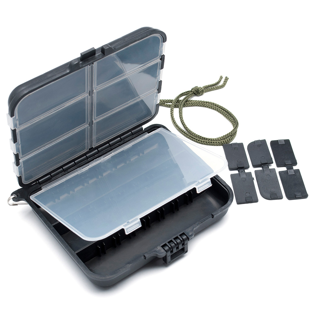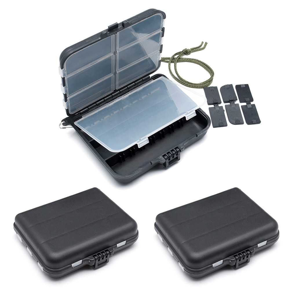 Yoshikawa Set of 3 Portable Mini Multiple Compartments Plastic Fly Fishing Tackle Boxes with Wrist Strap Black, Dividers